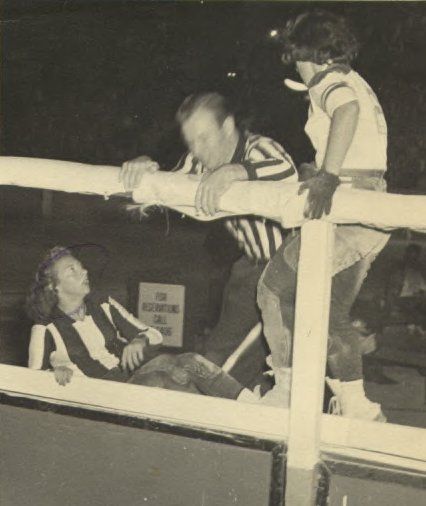 Loretta Behrens & Annis Jensen separated by Referee Roy Langley