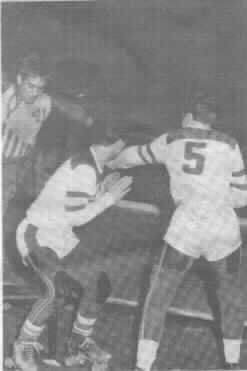 Leroy Gonzales tangles with two T-Bird opponents