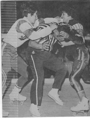 Referee John "Gootch" Gautieri between Terri Lynch and Liz Hernandez