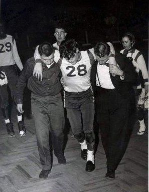 Butch Knerr Butch Knerr helped from the track at the 9th Regiment Amory. Helping Butch are Bucky Bucklin and Buddy Atkinson, Sr. Bob Woodberry, Buddy Atkinson, Jr, and Gerry Murray in the background