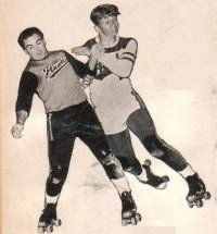 George Adams of the Hawks blocks Jerry Reilly of the T-Birds